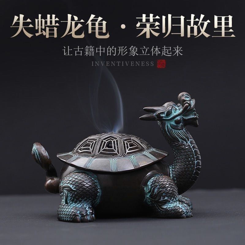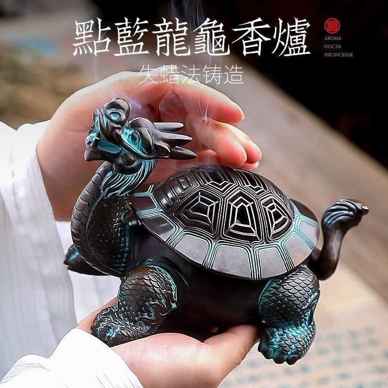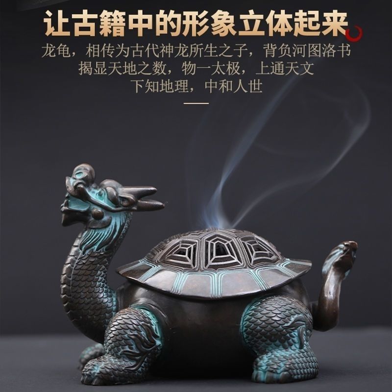 Exquisite Antique Chinese Dragon Turtle Copper Alloy Incense Burner – Home Indoor Decor, Meditation Ornament, Incense Burner & Diffuser Gift
