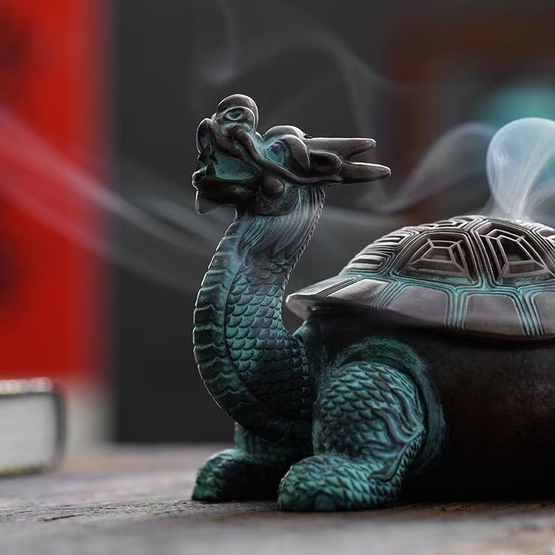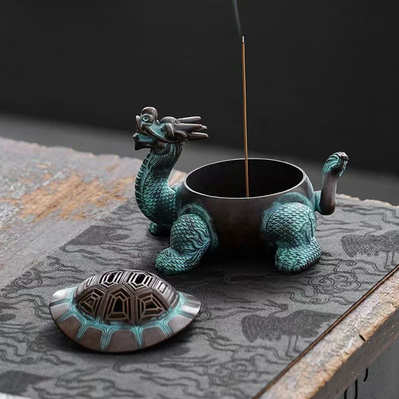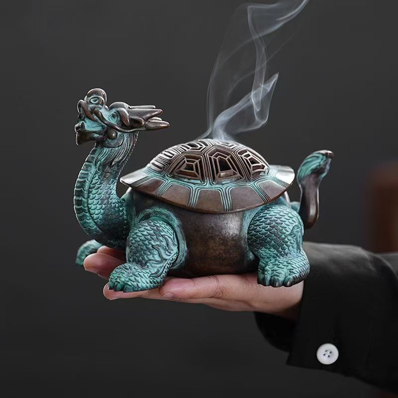 The Chinese dragon turtle, or longgui, is a mythical creature steeped in feng shui and traditional Chinese culture. Combining the dragon’s power and good fortune with the turtle’s longevity and stability, this motif is believed to bring blessings of wealth, health, and protection to its owner. The Antique Chinese Dragon Turtle Copper Alloy Incense Burner honors this legacy with its detailed design: the dragon’s head, with its fierce yet noble expression, pairs seamlessly with the turtle’s ridged shell, each curve and scale crafted to reflect the creature’s mythical essence. For those who value cultural depth, this incense burner isn’t just decor—it’s a piece of history you can display daily.