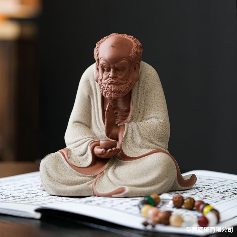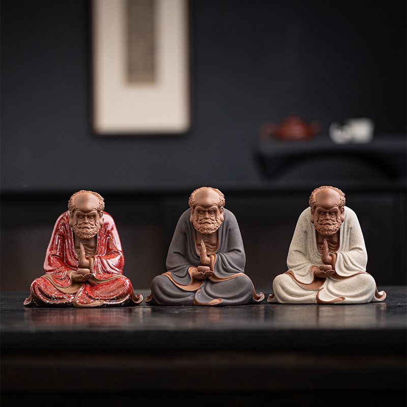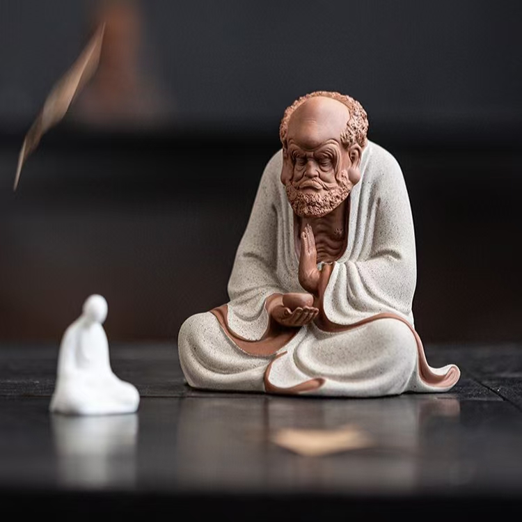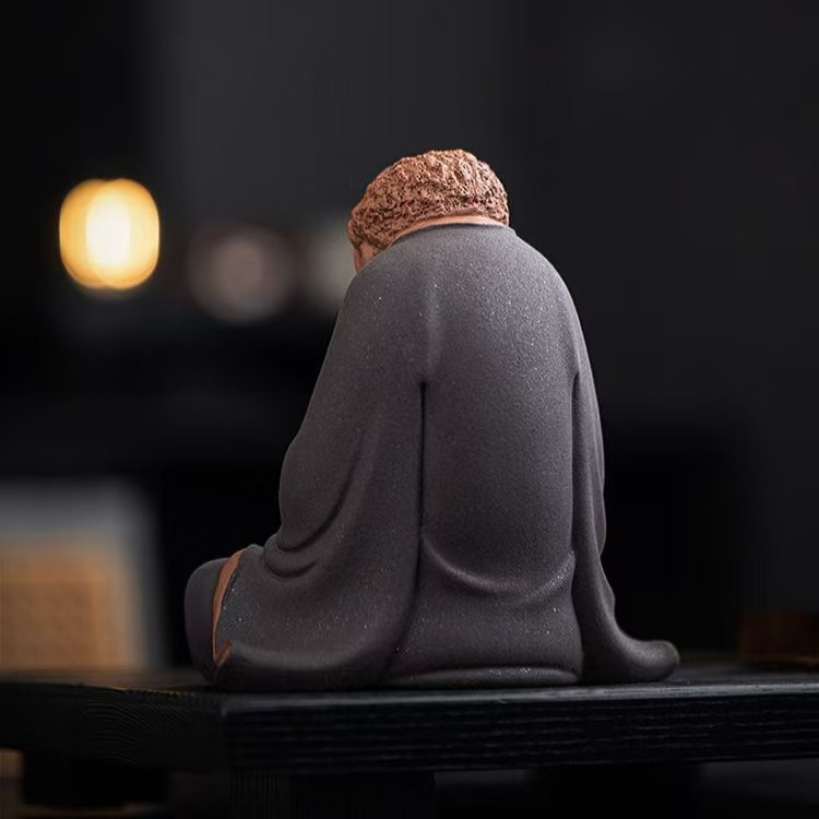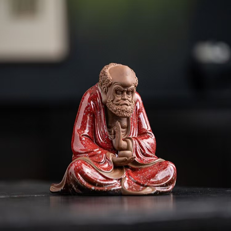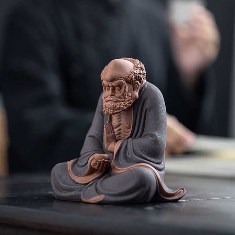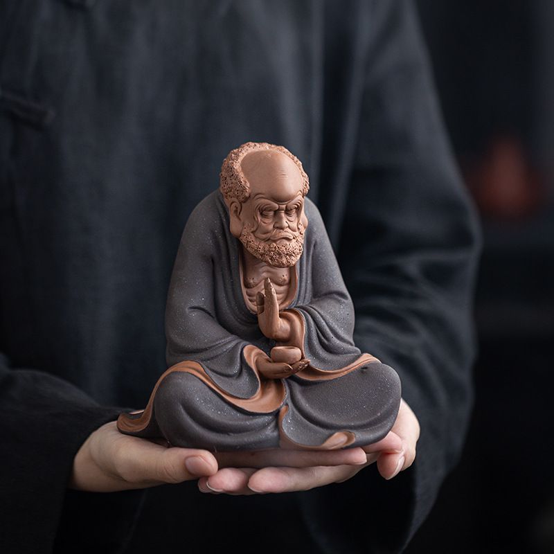 Every Bodhidharma Zen Zisha Figurine is crafted by skilled artisans, often from the historic pottery hub of Yixing (Jiangsu Province, China), where Zisha craftsmanship has been perfected over centuries. The process begins with selecting high-quality Zisha clay, which is aged for years to enhance its plasticity and durability. Artisans then hand-shape the figurine, paying meticulous attention to Bodhidharma’s facial features, robe folds, and posture—each detail reflecting the artisan’s understanding of Zen aesthetics. After shaping, the figurine undergoes multiple firing sessions in traditional kilns, a process that brings out the clay’s natural earthy hues (ranging from deep brown to reddish-purple) and ensures its longevity.