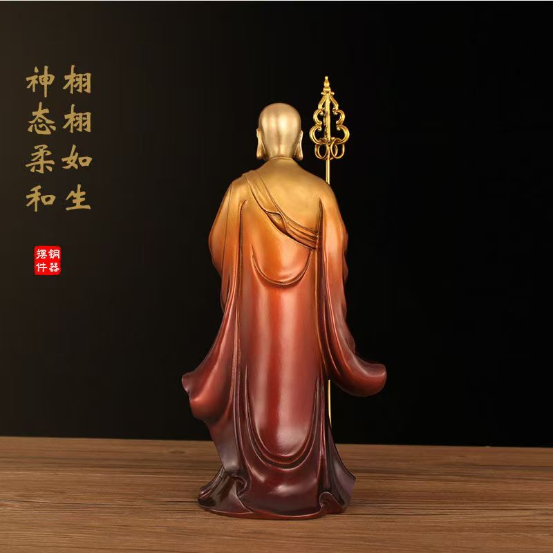 As a Earth Store Bodhisattva copper figurine, it represents both earthly beauty and spiritual treasure. Whether for personal practice, as a home decoration ornament, or as a gift of profound meaning, this colored brass statue of the Standing Earth Store Bodhisattva is a timeless embodiment of compassion and vows.
