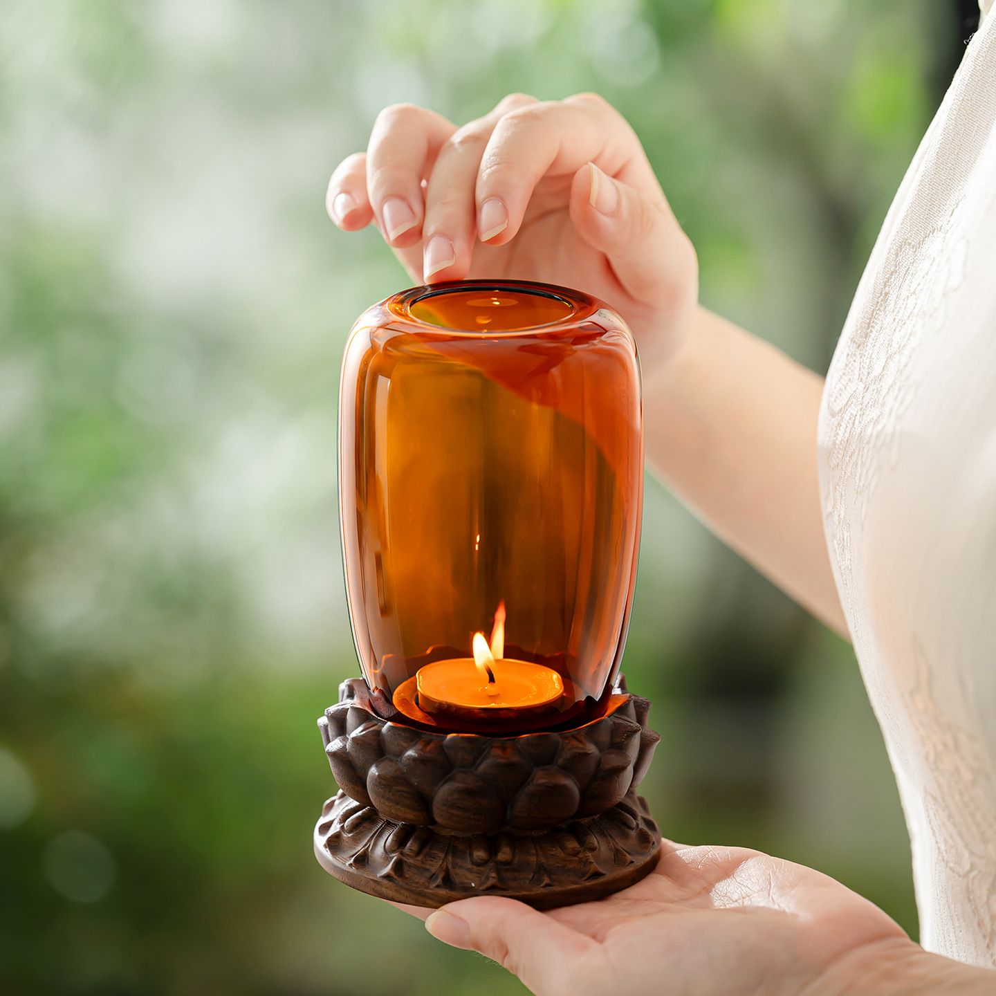 Practicality meets tranquility in this versatile product. As a candle holder, the windproof cover stabilizes flames, making it safe for meditation or breezy areas. The removable glass enclosure simplifies cleaning and candle replacement, while the heat-resistant wood base protects surfaces from damage. Additionally, the base doubles as an incense burner, accommodating sticks or cones to fill your space with calming scents—ideal for deepening meditation or enhancing tea ceremonies. Its compact size ensures it fits on small tables, shelves, or meditation cushions without overwhelming the space.