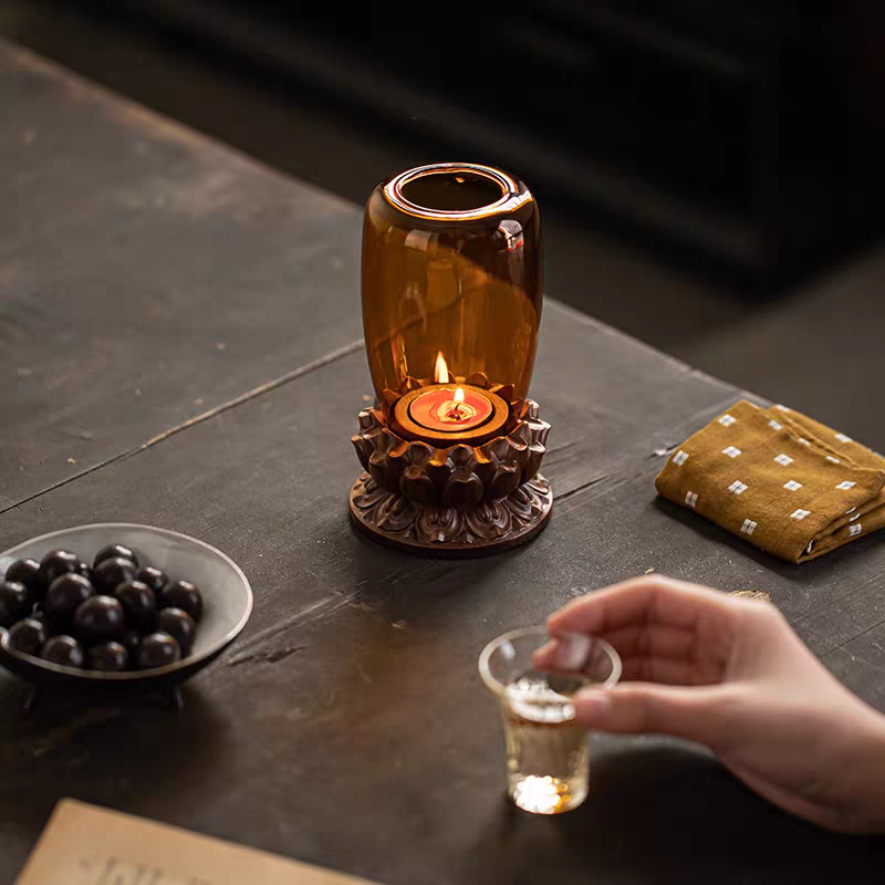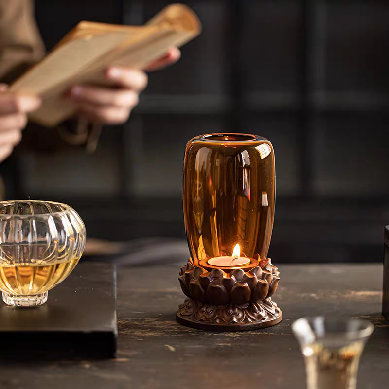 The Chinese Antique-style Lotus Candle Holder with Windproof Cover & Solid Wood Base is a harmonious fusion of traditional Eastern aesthetics and functional design, doubling as a Zen Lotus Incense Burner & Candle Holder for Meditation Space. This exquisite piece marries the timeless symbolism of the lotus flower (a representation of purity and enlightenment in Buddhism) with practical features that elevate serene environments—from Meditation nooks to tea rooms. Crafted to honor Chinese antique craftsmanship while meeting modern needs, it serves as both a decorative statement and a tool for mindfulness.