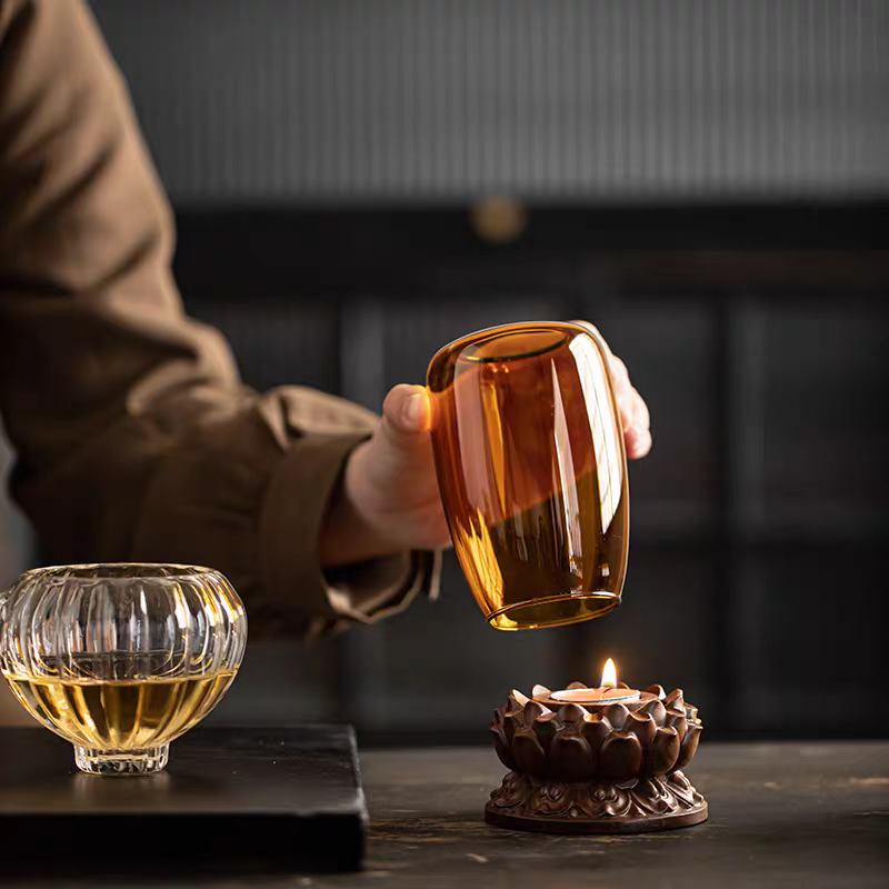 Every detail of this lotus candle holder reflects meticulous artistry. The glass enclosure, a nod to Chinese antique glasswork, features a windproof cover that diffuses candlelight softly while shielding flames from drafts. The lotus-shaped solid wood base, chosen for its durability and natural warmth, showcases subtle hand-carved motifs that complement the lotus design, adding artisanal authenticity. The glass is clear yet slightly frosted to enhance the glow, while the wood base’s smooth finish ensures it blends seamlessly with any Zen or minimalist decor. Each piece is hand-finished, making it a unique addition to your space.