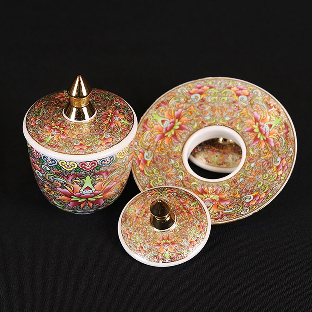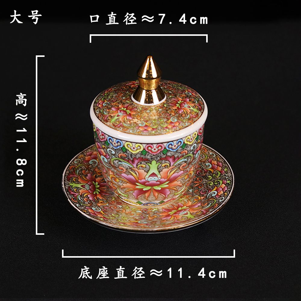 Cloisonne, a revered Chinese craft, defines this cup’s uniqueness. Each piece undergoes a meticulous process: bending fine metal wires into intricate lotus patterns (a Buddhist symbol of enlightenment emerging from worldly attachments), filling gaps with vibrant enamel, firing repeatedly, and polishing to a glossy finish. Unlike mass-produced alternatives, this cup is handcrafted—every curve and color variation adds a personal touch to your spiritual space. Its compact size fits most home altars, making it ideal for daily offerings without overwhelming the setup.