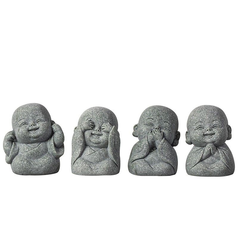 Key Features of the Cute Mini Resin Four Little Monks Scenery Figurines