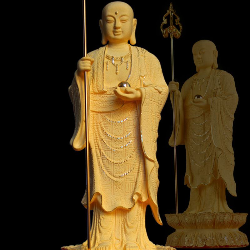 Key Features of the Flocked Gold-Plated Ksitigarbha Bodhisattva Statue