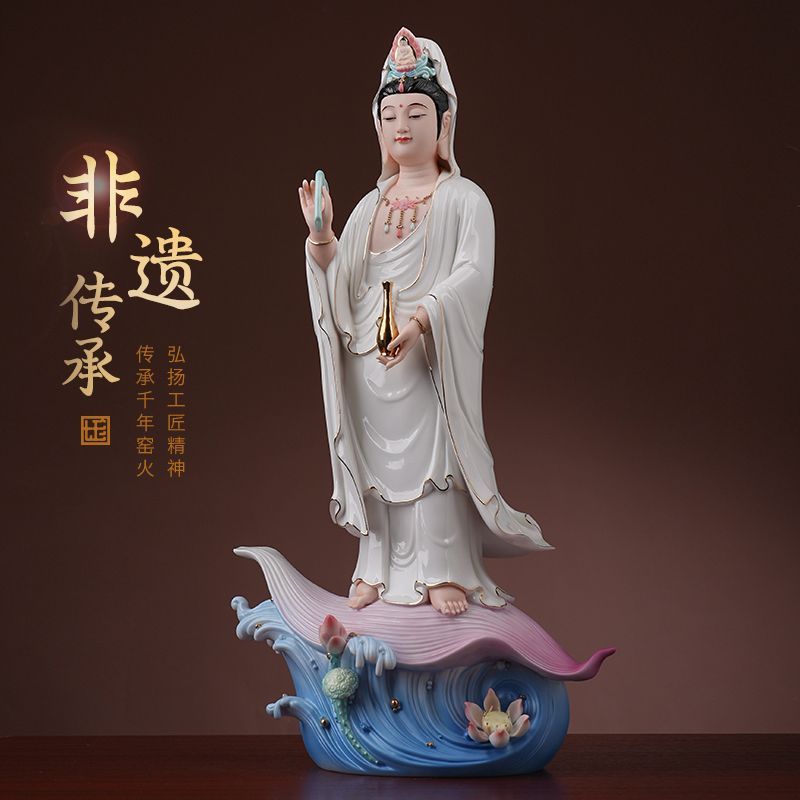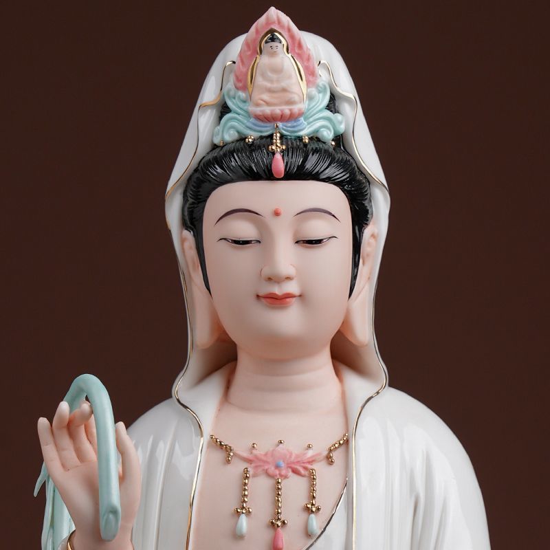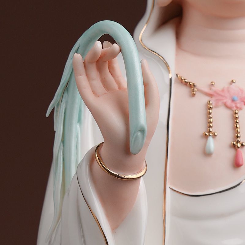 Master Hand-painted Guan Yin Ceramic Lotus Home Worship Statue: Sacred Avalokitesvara Sculpture for Altar & Living Room