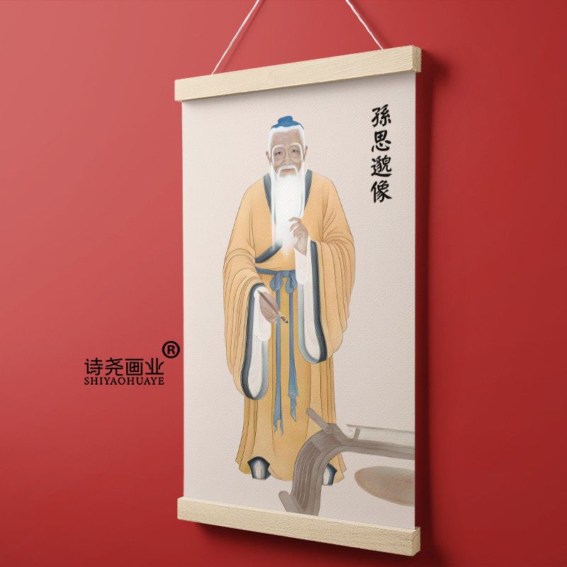 Sun Simiao is a legendary figure in traditional Chinese medicine (TCM) and taoist spirituality, revered across East Asia for his profound contributions to healing and humanity. Known as the “Medicine King” for his groundbreaking work (including the iconic *Qianjin Fang* or “Prescriptions Worth a Thousand Gold”), he was later deified as the “Wonderful Response Immortal” (妙应真人) for his benevolent influence on health, well-being, and spiritual harmony. His image is venerated for blessings of vitality, protection, and peace—making a wall scroll depicting him a meaningful addition to any home or altar.