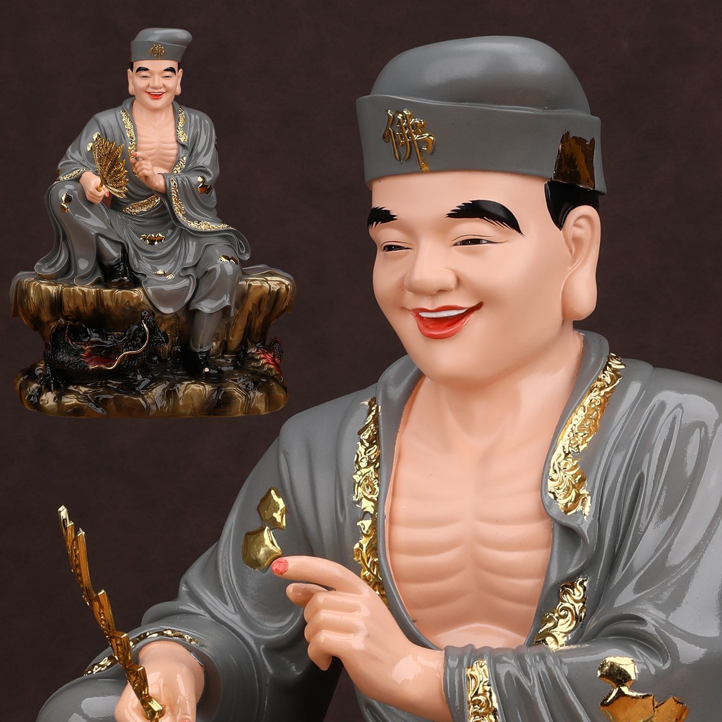 – Authentic Depiction: Every detail captures Ji Gong’s iconic look: his tattered robe, the fan (a symbol of his magical powers). Hand-painted with non-toxic, vivid colors, the statue brings his lively spirit to life.