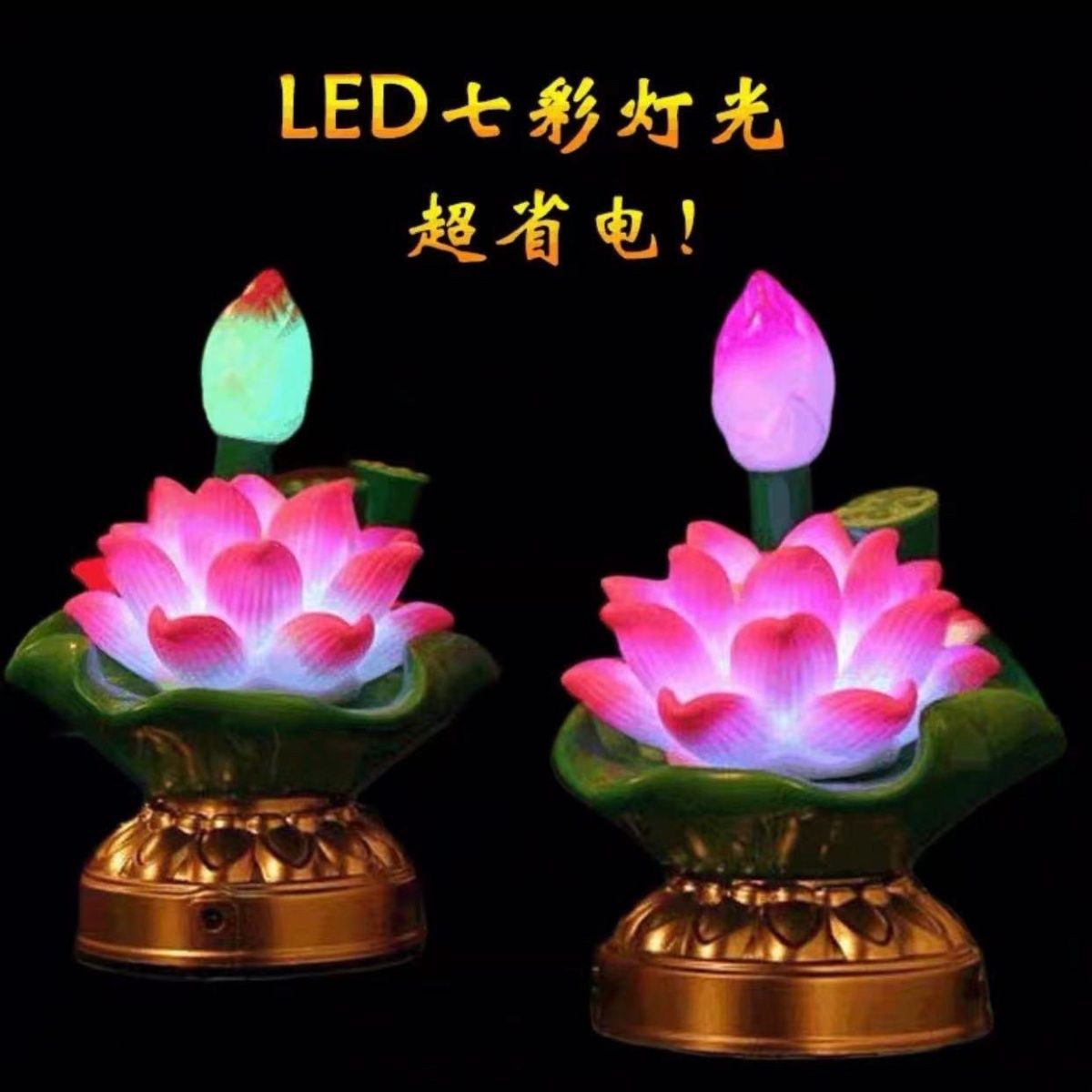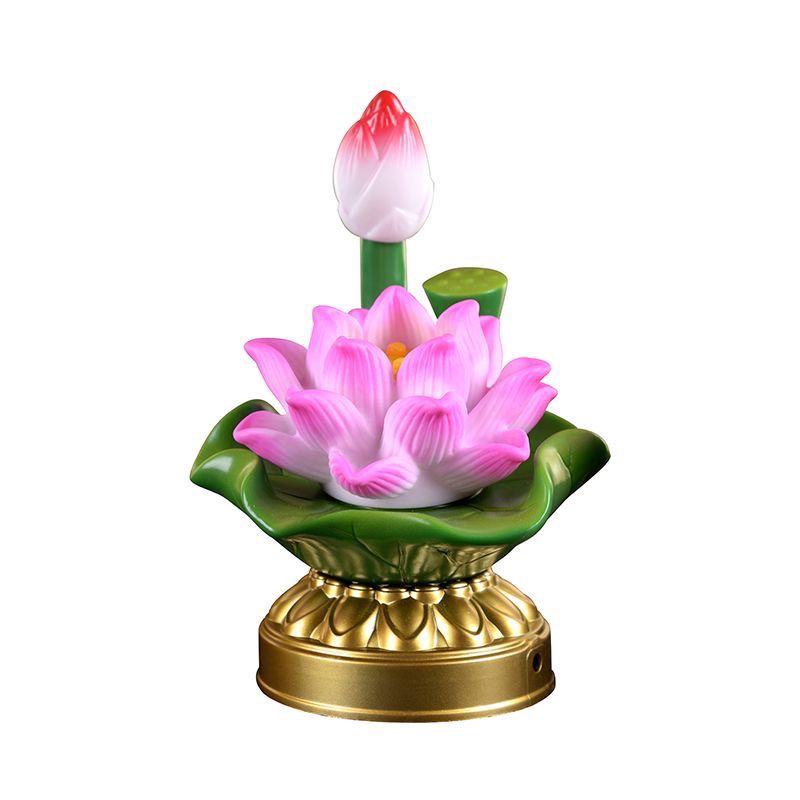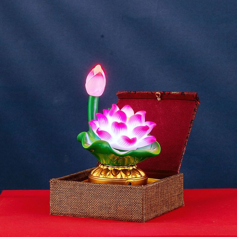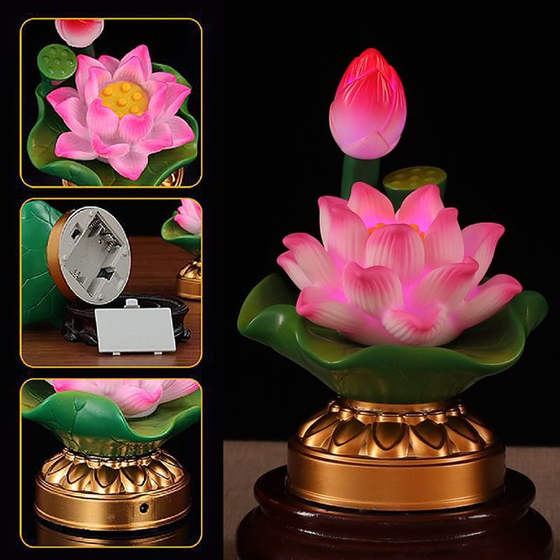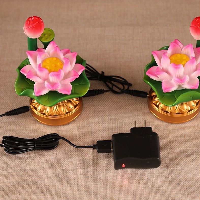Sacred Battery & Plug-In Dual-Use LED Color-Changing Buddhist Lotus Eternal Lamp Pair – Energy-Saving, Home Worship Lamp