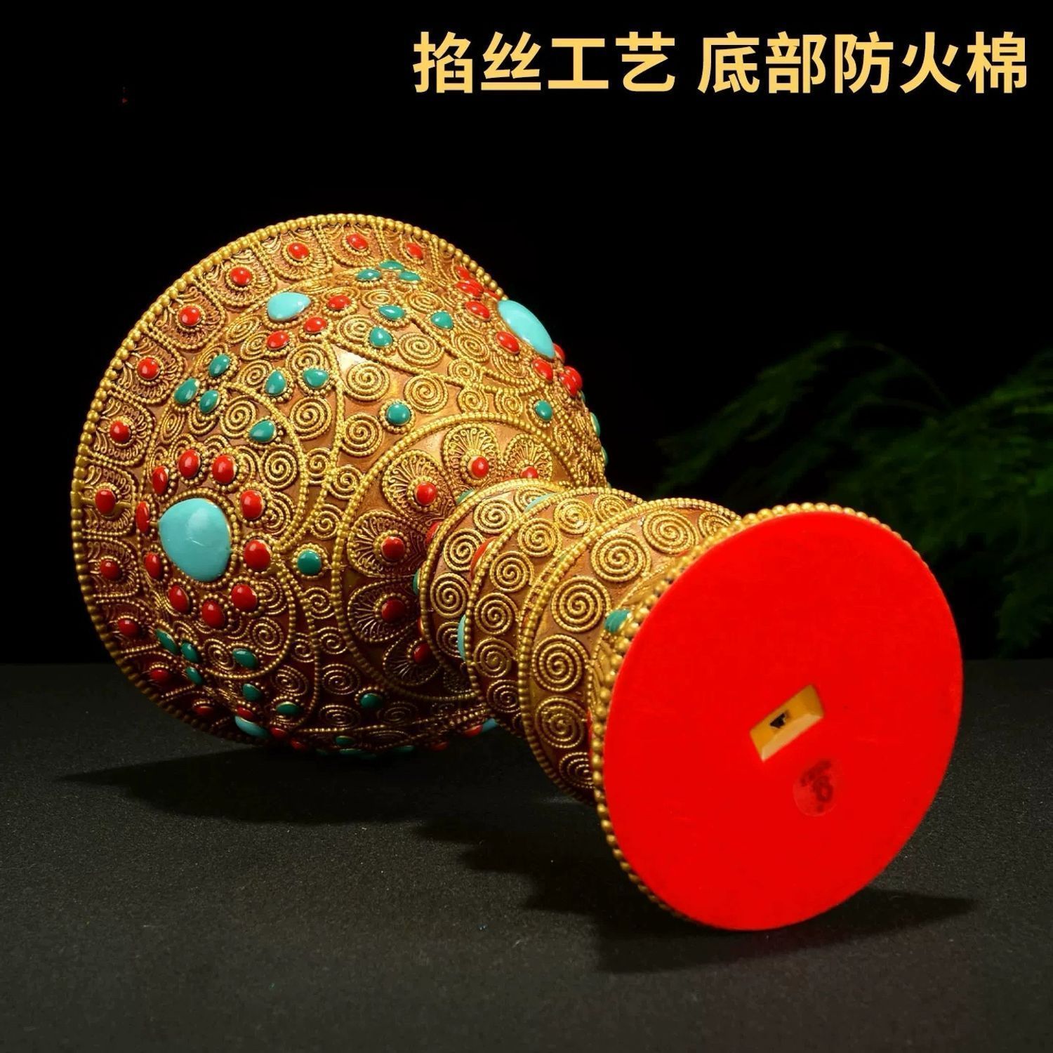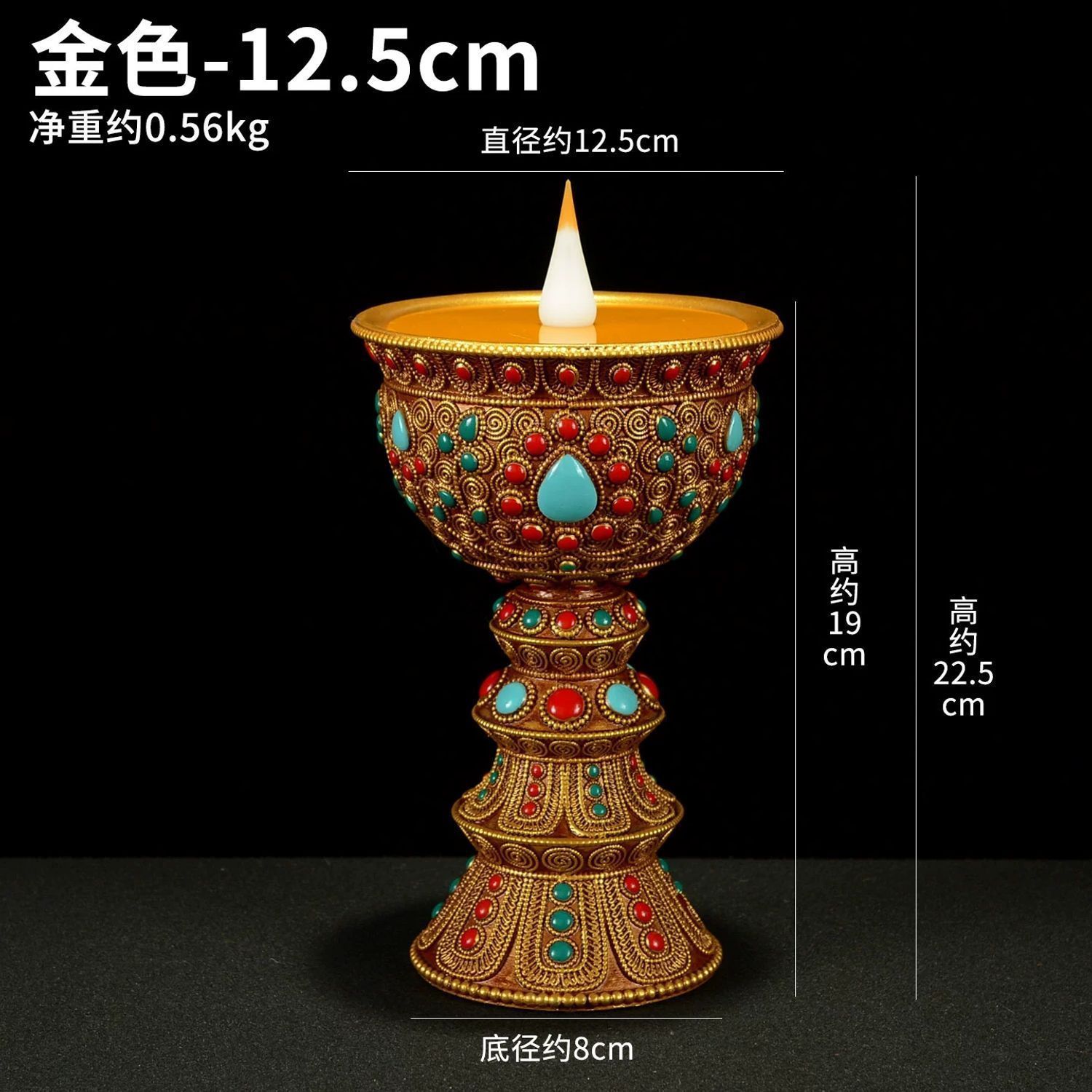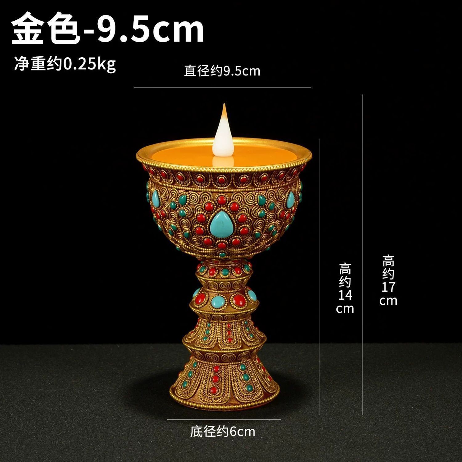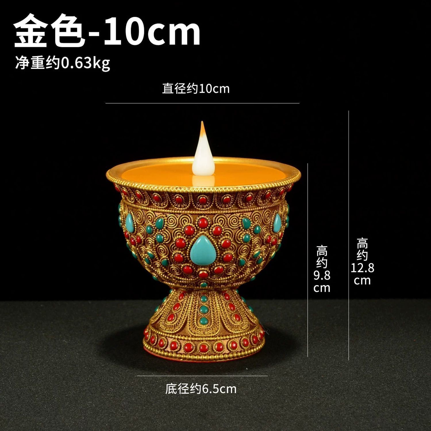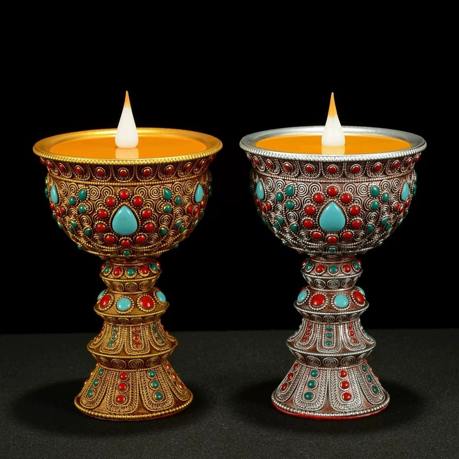 This Tibetan-style bead-inlaid LED electronic butter lamp holder is a modern, safe alternative to traditional butter lamps and candles, merging Tibetan cultural aesthetics with practical technology.