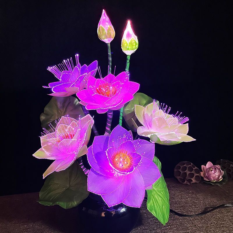 Step into a world of tranquil beauty with the LED Color-Changing Fiber Optic Nine-Lotus Bonsai Night Light Ornament—an exquisite blend of traditional symbolism and modern fiber optic technology. This unique piece transcends ordinary decor, merging the serene imagery of lotus flowers (a symbol of purity and enlightenment across cultures) with dynamic color-changing LED lights to create a calming, eye-catching focal point in any space. Whether you’re looking to enhance your bedroom’s sleep environment, add a peaceful touch to your living room, or gift a thoughtful present to a loved one, this ornament delivers both aesthetic appeal and functional comfort.