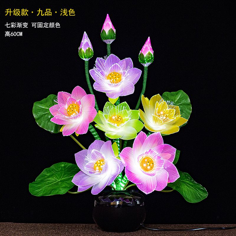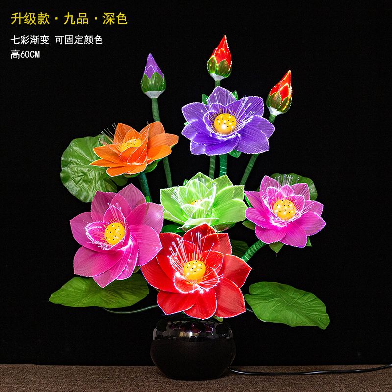 Exquisite LED Color-Changing Fiber Optic Nine-Lotus Bonsai Night Light Ornament: Serene Ambiance Meets Artful Design