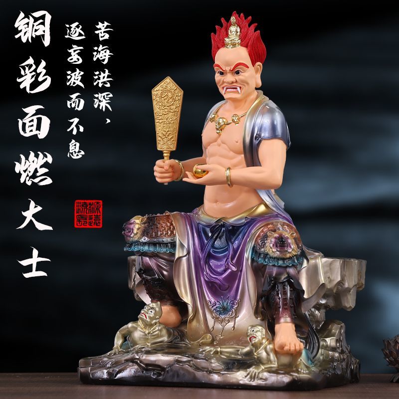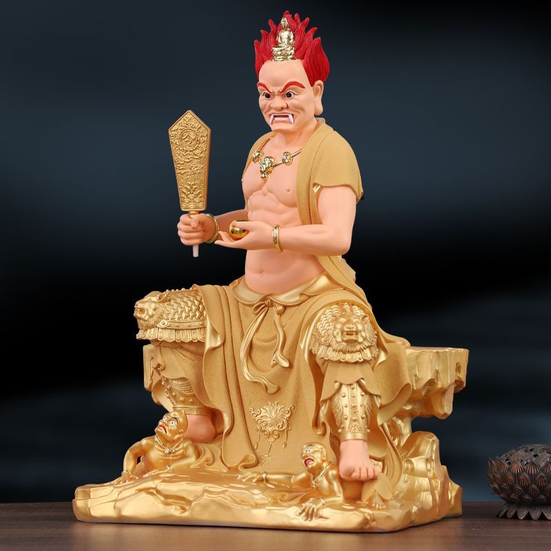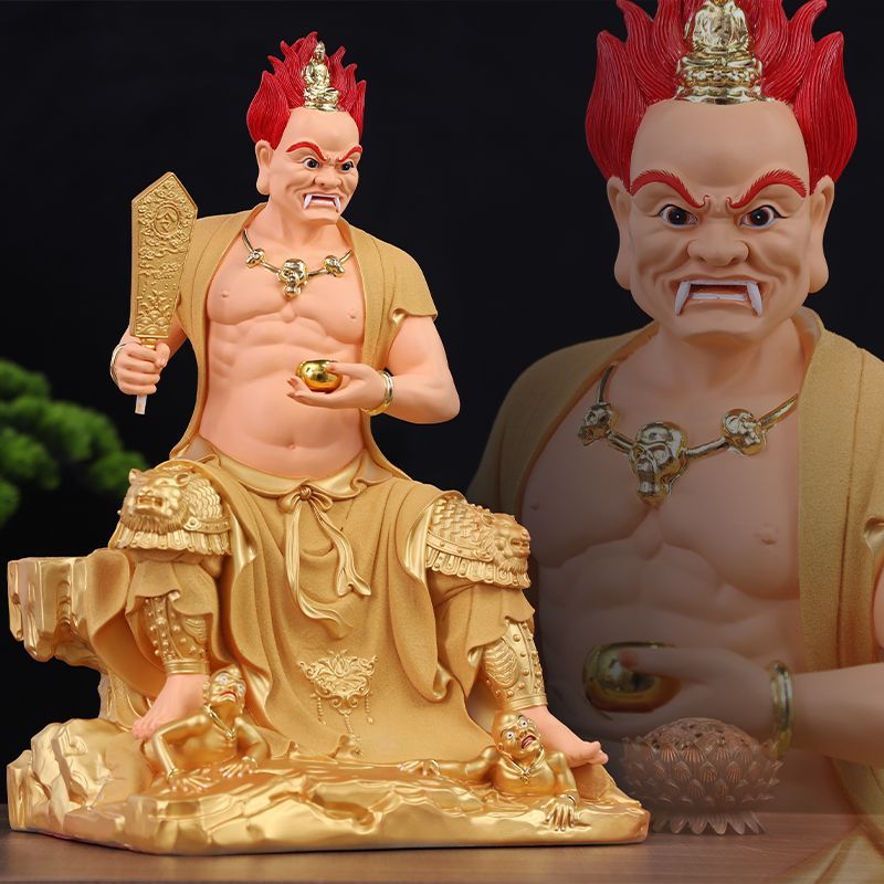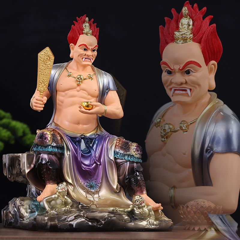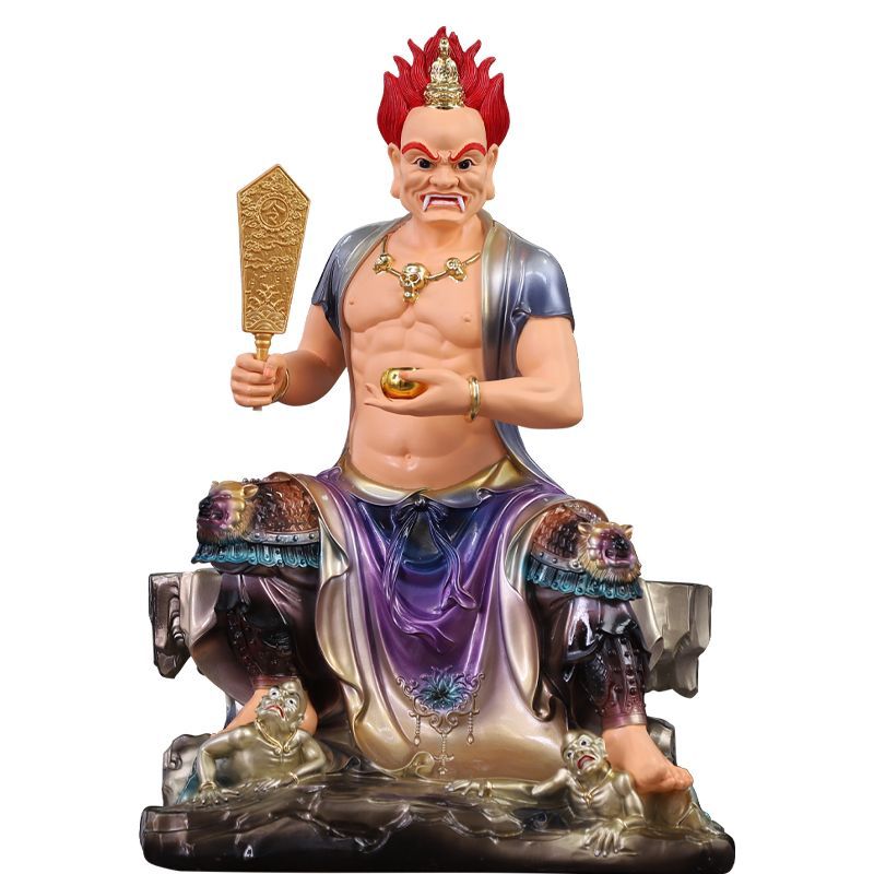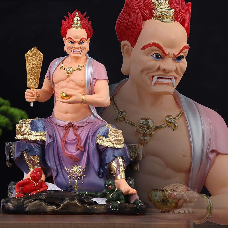 The Mian Ran Da Shi Statue draws its roots from cross-cultural influences (Taoist and Buddhist) but is most prominently venerated in Taoist practices. The Sanskrit term “Ulkāmukha” translates to “flaming mouth,” while “Pretarāja” means “king of ghosts”—hence its common name, the Flaming Mouth Ghost King Statue. In taoism, this deity is also called Mian Ran Da Shi (Red-Faced Great Master) or Da Shi Ye, and is recognized as a Pudu General (salvation deity) tasked with guiding wandering spirits to liberation and protecting the living from malevolent forces. Unlike gentle Taoist deities, its fierce appearance—wide flaming mouth, intense eyes—serves to ward off evil, reflecting Taoist teachings that compassion can take bold forms.
