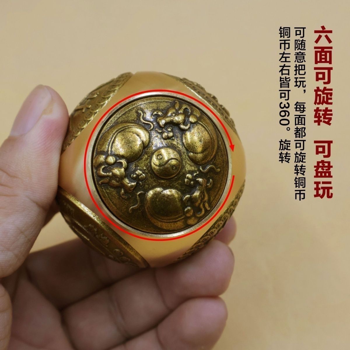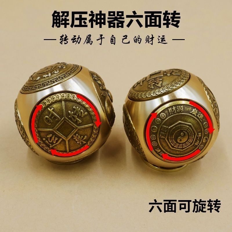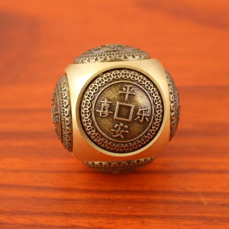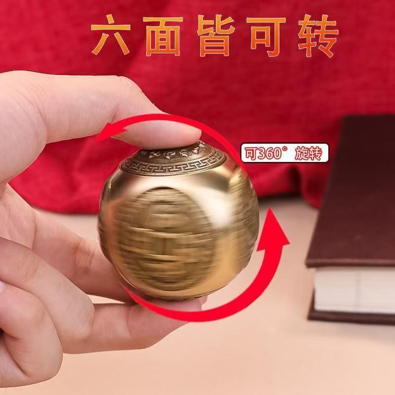 Crafted with meticulous attention to detail, this Feng Shui Handheld Ornament features a six-sided spherical shape, each face adorned with a mini Twirling Balls pattern. These rotating balls are intricately engraved with traditional auspicious motifs, including the Yin-Yang Bagua, zodiac ox symbols, and ancient Chinese coin patterns, accompanied by classic Chinese-style blessing inscriptions such as “Cai Yuan Gun Gun” (wealth rolling in), “Shi Lai Yun Zhuan” (fortune turning for the better), “Zhao Cai Jin Bao” (attracting wealth and treasures), “Niu Zhuan Qian Kun” (turning the tide for great success), and “Ping An Xi Le” (peace and joy).