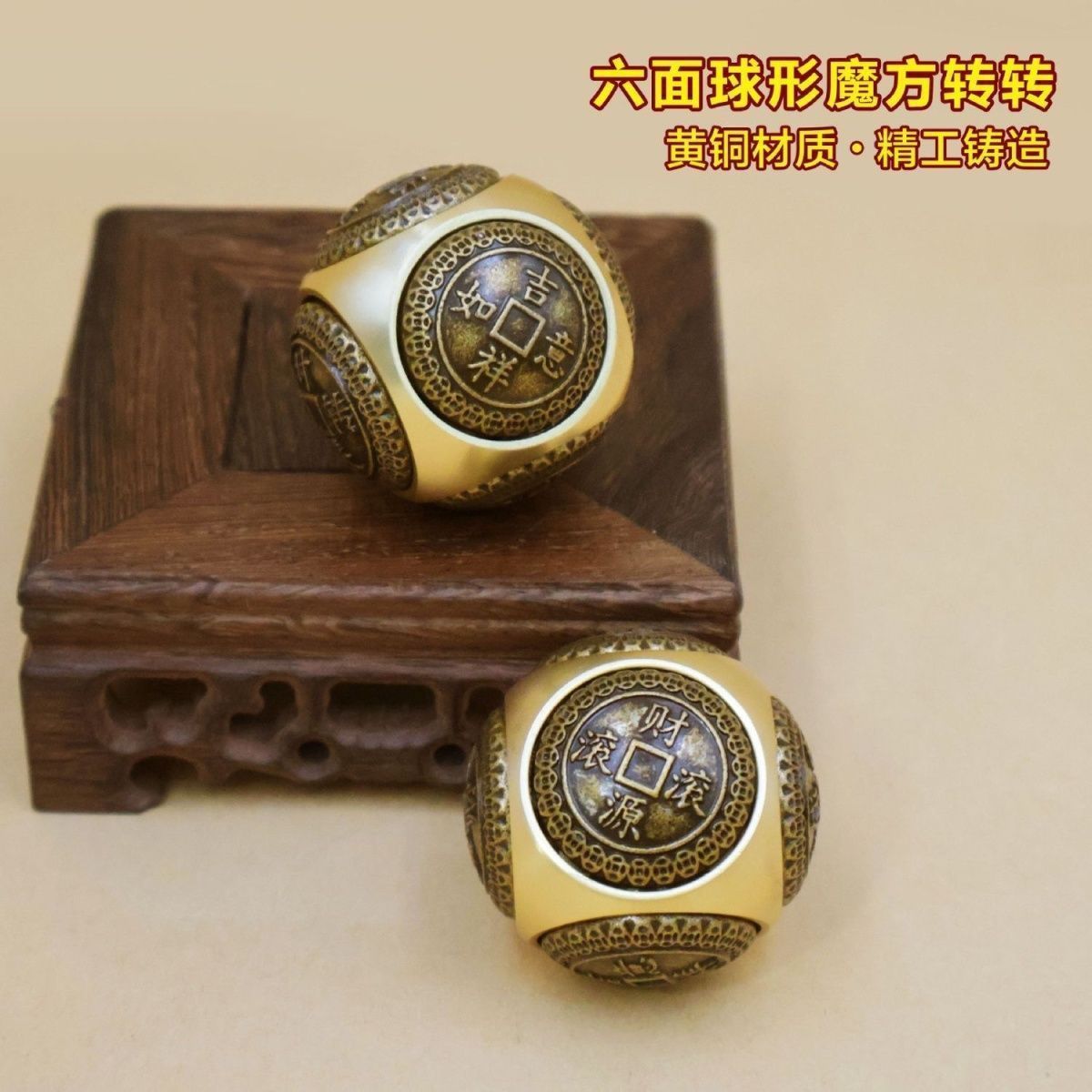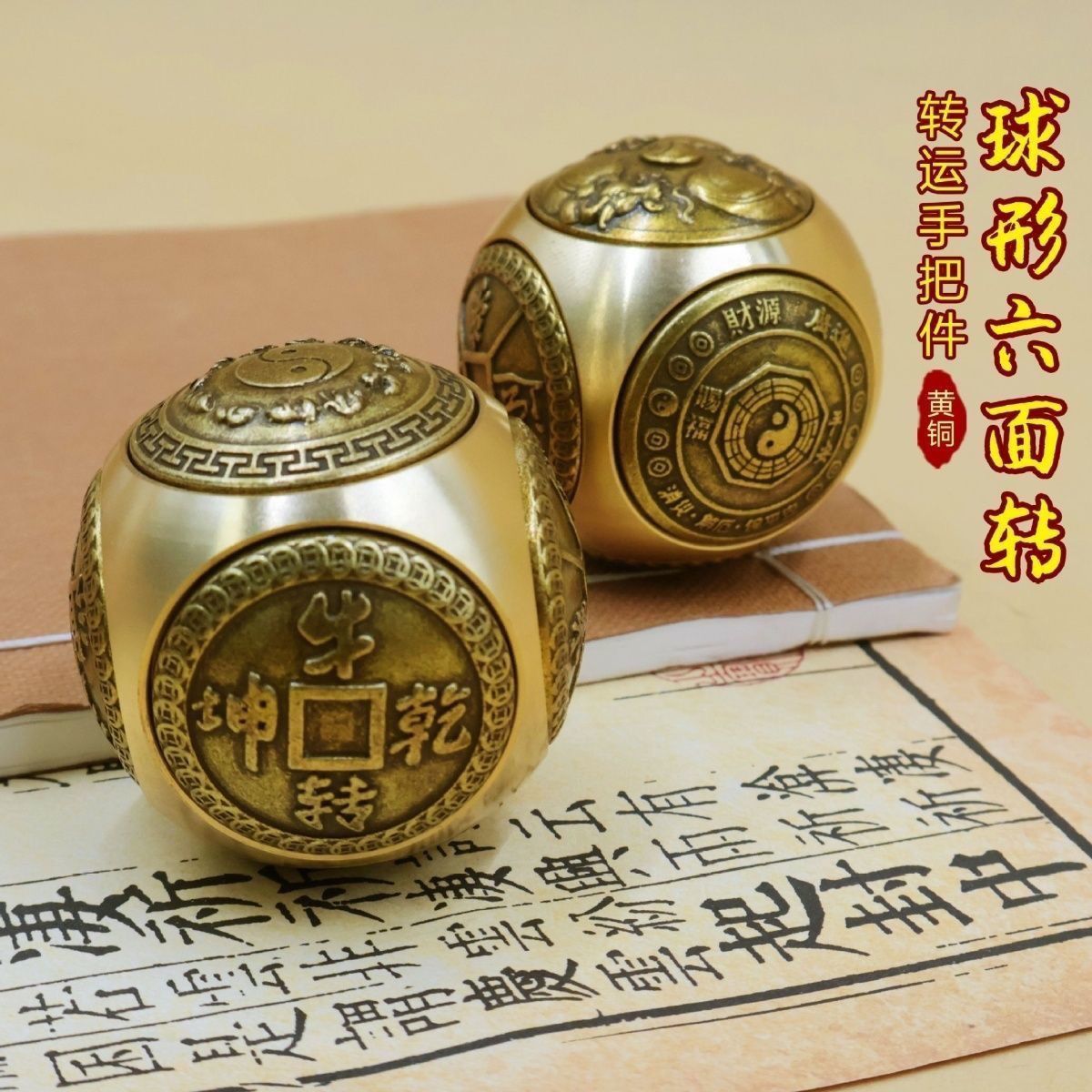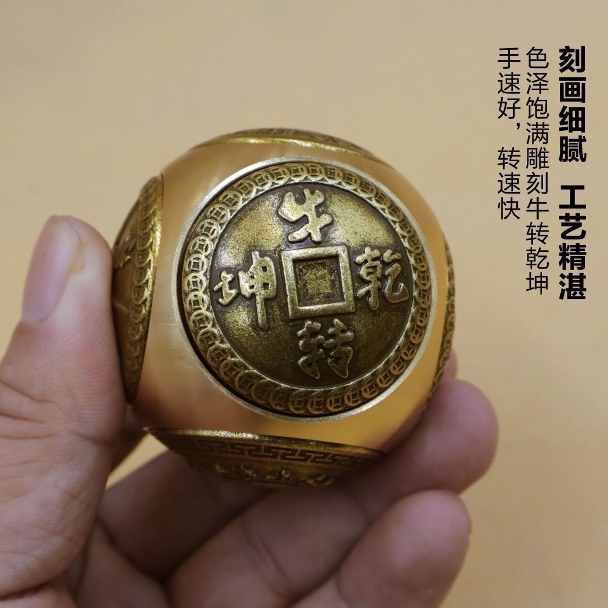 Crafted with meticulous attention to detail, this Feng Shui Handheld Ornament features a six-sided spherical shape, each face adorned with a mini Twirling Balls pattern. These rotating balls are intricately engraved with traditional auspicious motifs, including the Yin-Yang Bagua, zodiac ox symbols, and ancient Chinese coin patterns, accompanied by classic Chinese-style blessing inscriptions such as “Cai Yuan Gun Gun” (wealth rolling in), “Shi Lai Yun Zhuan” (fortune turning for the better), “Zhao Cai Jin Bao” (attracting wealth and treasures), “Niu Zhuan Qian Kun” (turning the tide for great success), and “Ping An Xi Le” (peace and joy).
