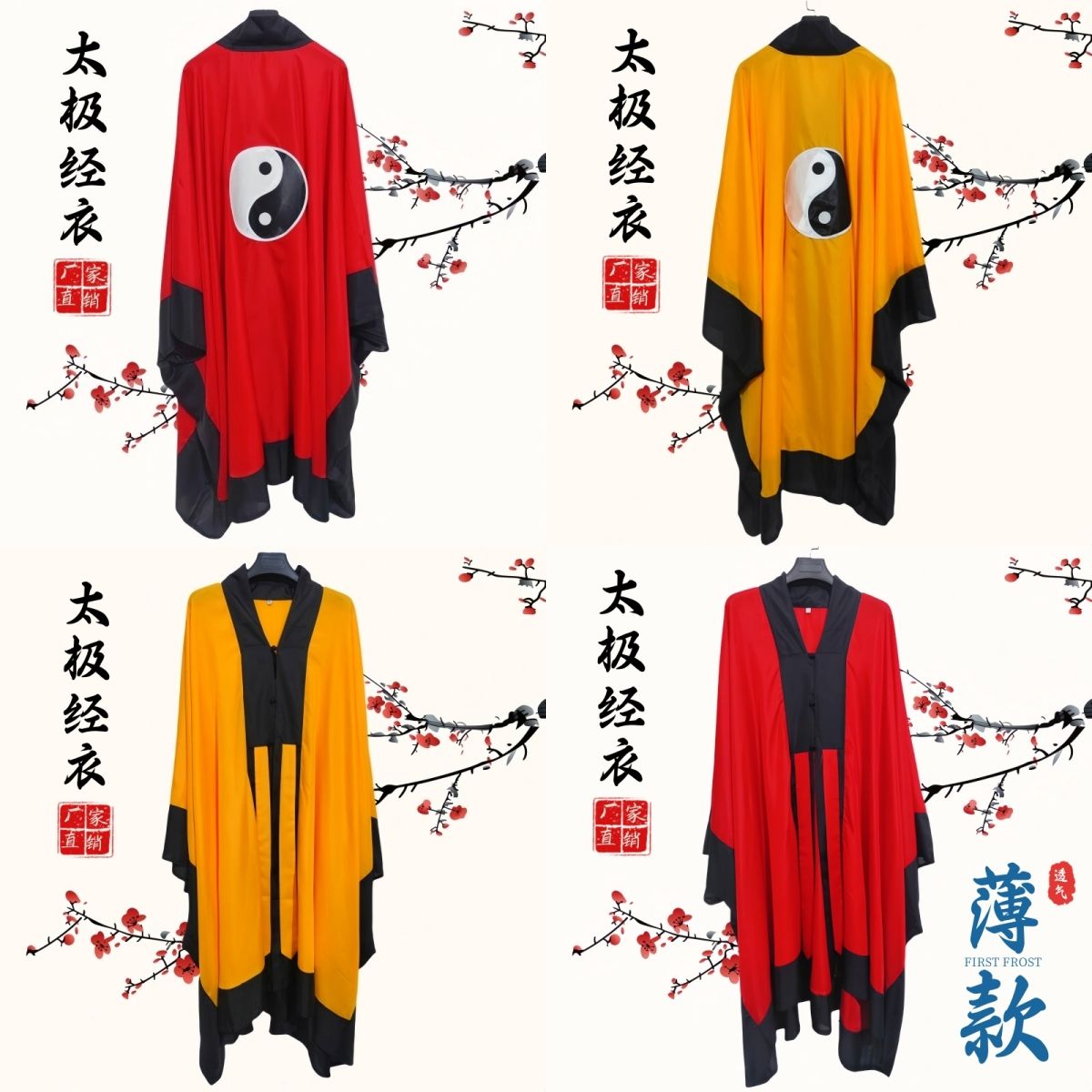 | Style | Yellow Tai Chi Ceremonial Robe, Red Tai Chi Ceremonial Robe, Red Plain Ceremonial Robe, Yellow Plain Ceremonial Robe |
