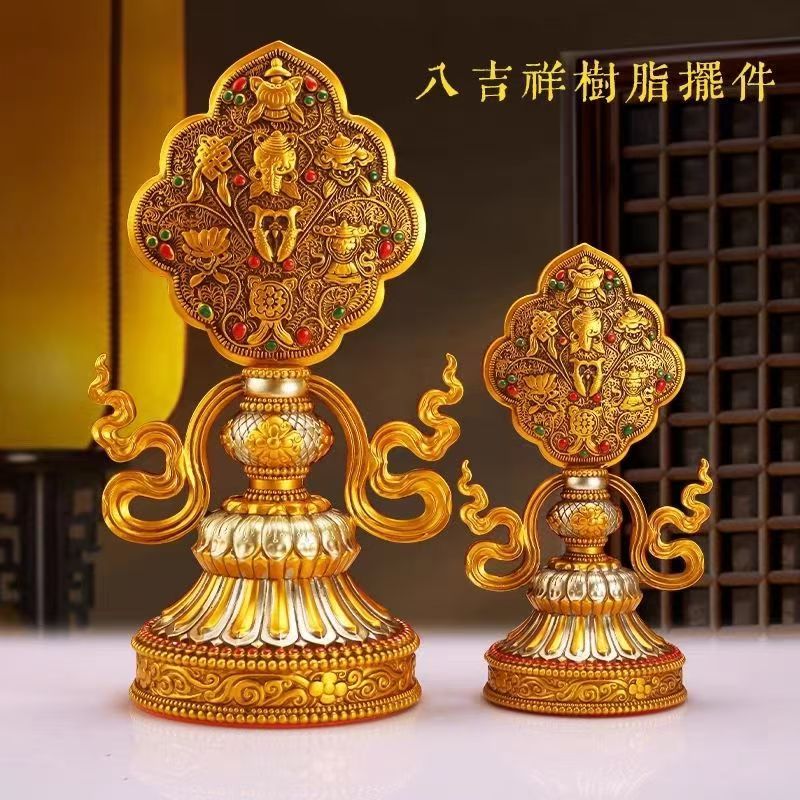 Tibetan Ashtamangala Buddhist Altar Statues: Resin Eight Auspicious Symbols Ornament for Home Decor