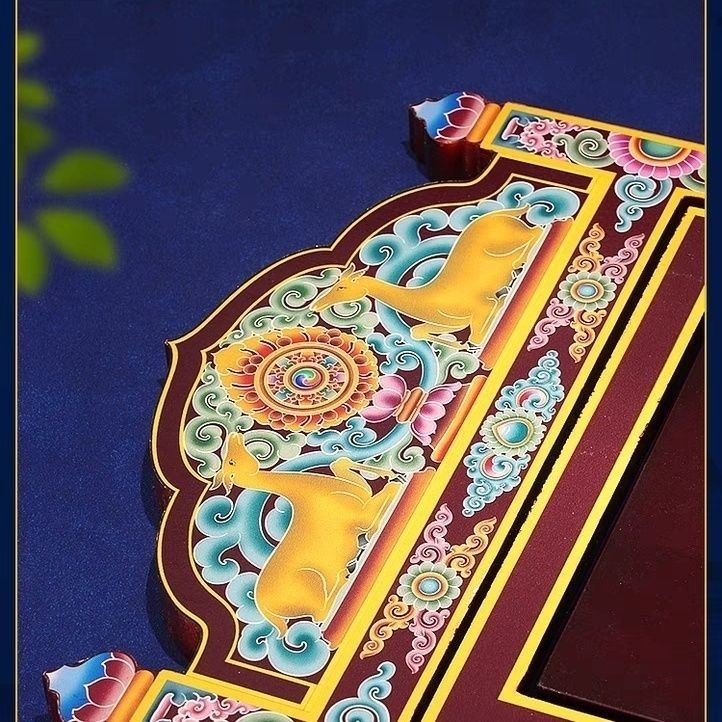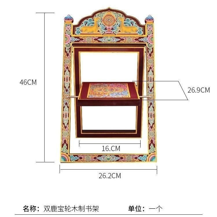 The design is graced by the powerful and serene motif of The Two Deer Flanking the Dharma Wheel. This central symbol in Tibetan Buddhism represents the very first teaching of the Buddha and the peaceful, attentive listening of all beings to the Dharma. Having this symbol on your reading rack infuses your practice space with profound meaning and traditional elegance.