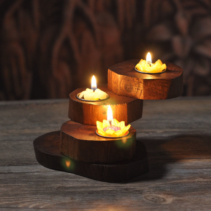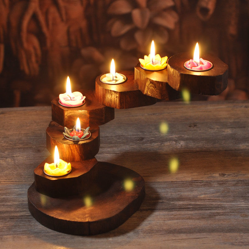 Vintage Multi-Tier Rotating Candle Holder – Thai Solid Wood Creative Candelabra Centerpiece for Romantic Dining Decor