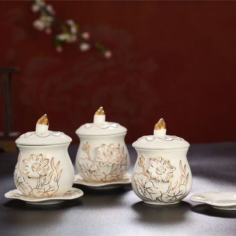 Crafted from food-grade ceramic, the White Lotus Buddhist Offering Set is non-toxic, heat-resistant, and easy to clean—critical for regular offerings. The smooth white glaze enhances the lotus’s pure appearance and resists stains, ensuring the set retains its beauty for years. Unlike cheaper alternatives, it won’t chip or fade easily, making it a reliable choice for long-term spiritual practice.