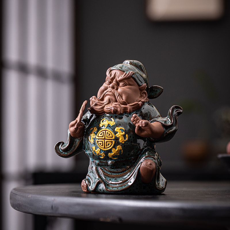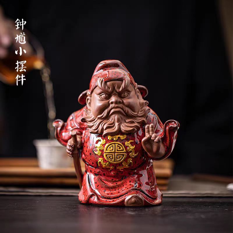 Zhong Kui Figurine Ceramic Zen Ornament: Chinese Home Decor for Serenity & Cultural Charm, Living Room Entryway Tea Table Tea Pet Ornament